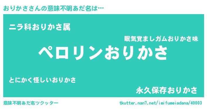 | 欧米人風あだ名 | 『マイケルおりかさ』『ダニエルおりかさ』 |