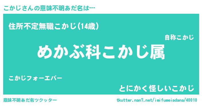 | 男性向けラノベタイトル風あだ名 | 『緋弾のコカジ』『はたらくこかじさま!』 |