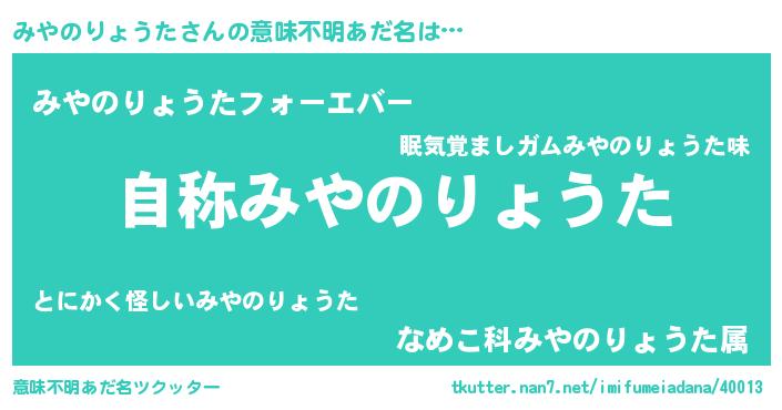 | 肩書あだ名 | 『みやのりょうた閣下』 |