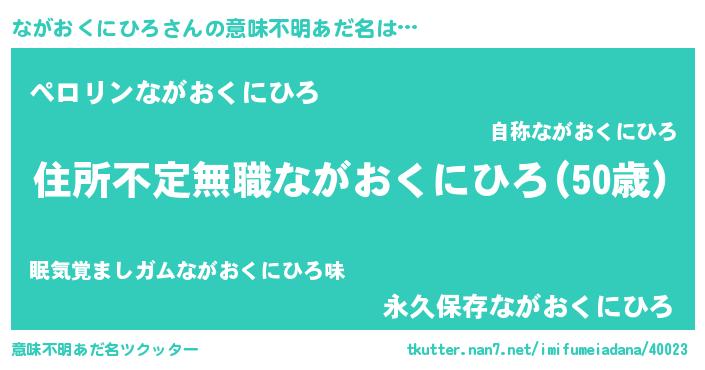 | 男性向けラノベタイトル風あだ名 | 『ながおくにひろに滅ぼされるだけの簡単なお仕事です』 |