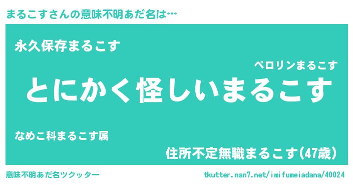 | 男性向けラノベタイトル風あだ名 | 『まるこすの嫁は女の子じゃないと思った?』 |