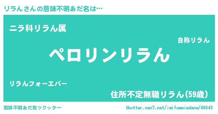 | 2回繰り返すあだ名 | 『リラリラ』『わなわな』『リリララ』 |