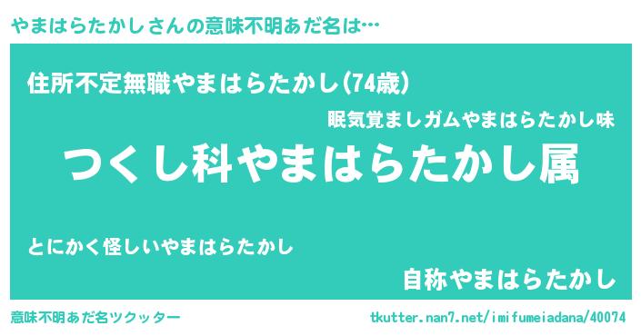 | 料理風あだ名 | 『やまはらたかしとほうれんそうの和風グラタン』 |