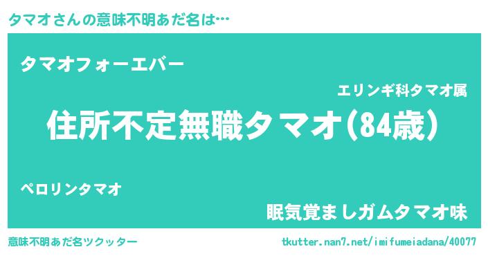 | ファンタジー風あだ名 | 『ヴァルタマーナ』『エターナルタマオー』 |