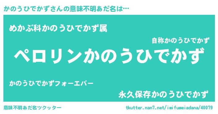 | 男性向けラノベタイトル風あだ名 | 『カノウヒデカズアートオンライン』 |