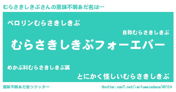 | ファンタジー風あだ名 | 『エターナルムラサキシキブー』 |