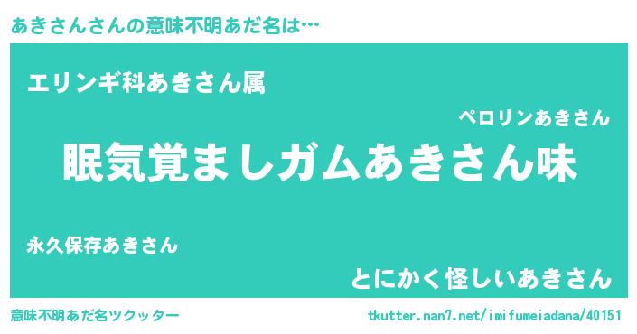 | ピコ太郎風あだ名 | 『アア太郎』『アキ五郎』『アコ六郎』 |