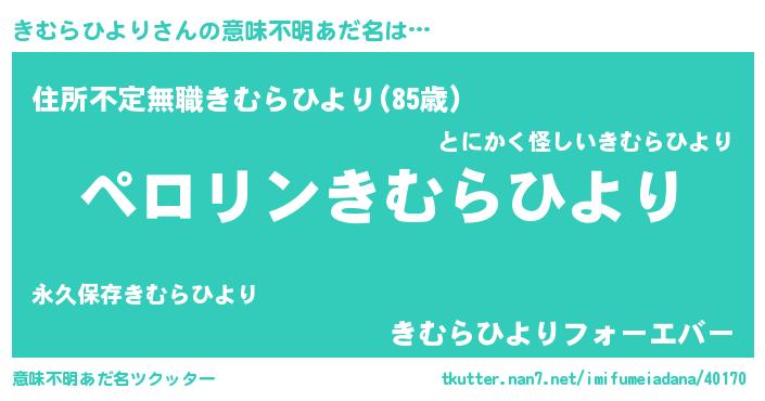 | 胡散臭い通販商品みたいなあだ名 | 『必ず成功する霊験あらたかなお札…その名も「きむらひより」』 |