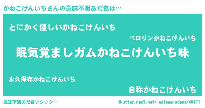 | 胡散臭い通販商品みたいなあだ名 | 『お金では代えられないイリジウム磁石…その名も「かねこけんいち」』 |