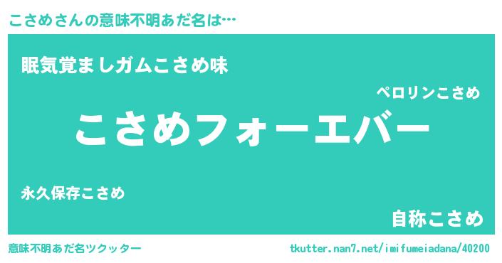 | 欧米人風あだ名 | 『こさめクリステル』『ダニエルこさめ』 |