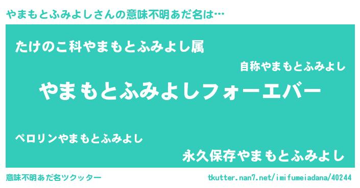 | ファンタジー風あだ名 | 『エターナルヤマモトフミヨシー』 |