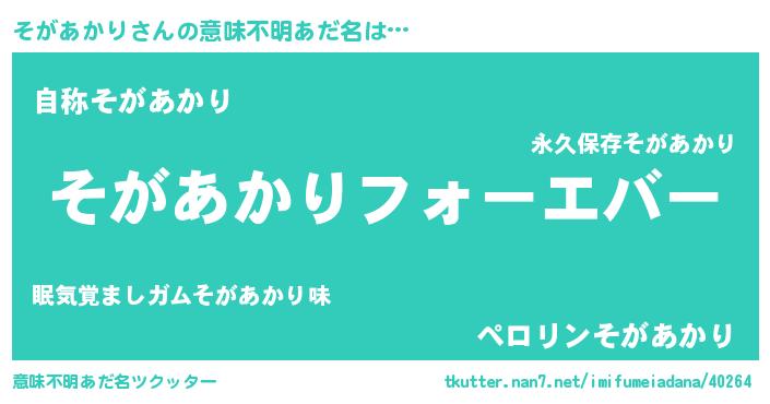 | ファンタジー風あだ名 | 『エターナルソガアカリー』『ゼソガトゥ』 |