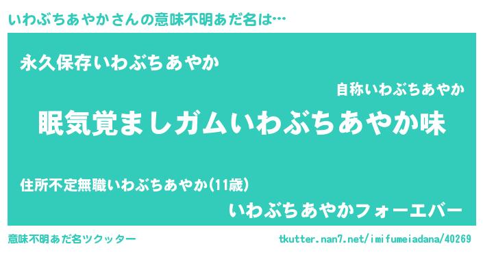 | ヘコむあだ名 | 『いわぶちあやか(苦笑)』『なまこ酢』 |