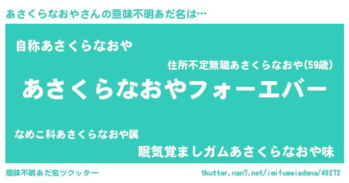 | 女子向けラノベタイトル風あだ名 | 『あさくらなおやの雑貨屋さん』 |