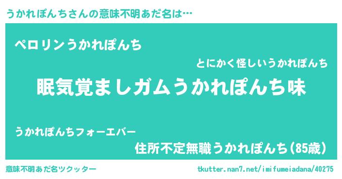 | ヘコむあだ名 | 『うかもー』『うかぷりん』『つくし』 |