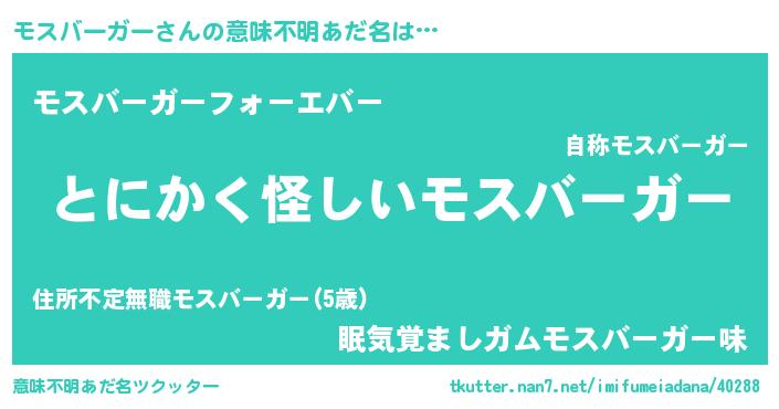 | ヒーロー風カッコイイあだ名 | 『天弓騎士モス』『最強戦士モスバーガー』 |