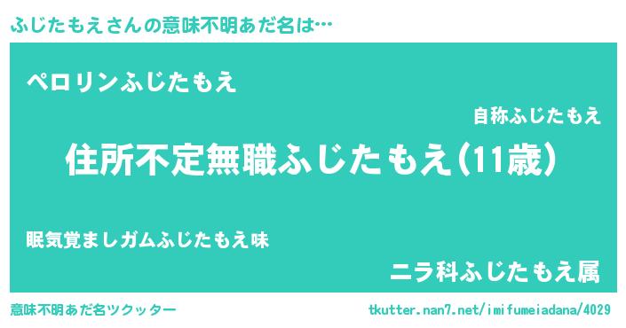 | 女子向けラノベタイトル風あだ名 | 『悪役ふじたもえに転生したようですが、知った事ではありません』 |
