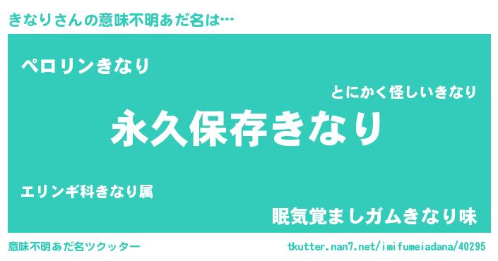 | 胡散臭い通販商品みたいなあだ名 | 『来世でも幸せになれる水素水…その名も「きなり」』 |