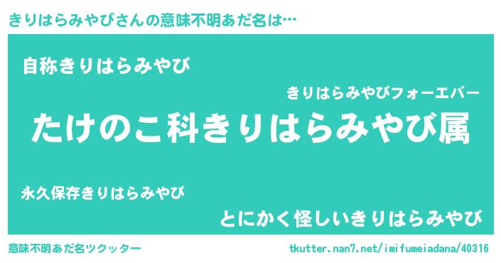 | 料理風あだ名 | 『きりはらみやびごはん』 |