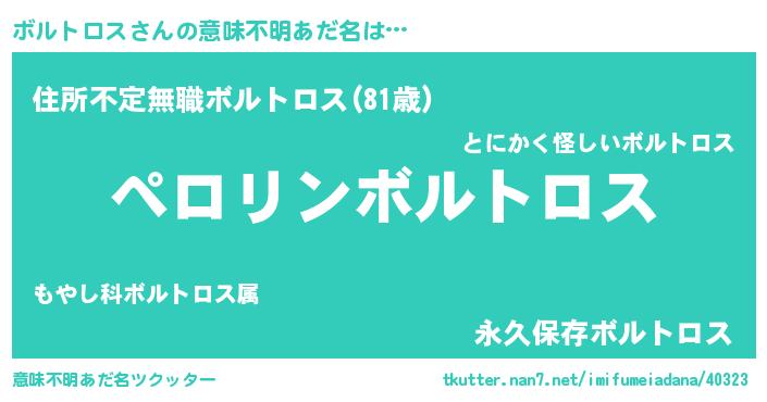 | 胡散臭い通販商品みたいなあだ名 | 『モテモテ間違いなし水晶球…その名も「ボルトロス」』 |