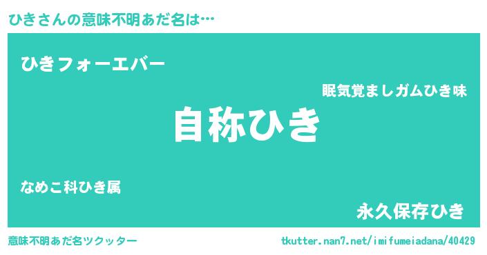 | ファンタジー風あだ名 | 『ゼヒキトゥ』『エターナルヒキー』 |