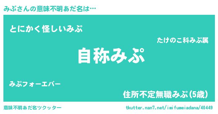 | 男性向けラノベタイトル風あだ名 | 『Re:みぷから始める異世界生活』 |