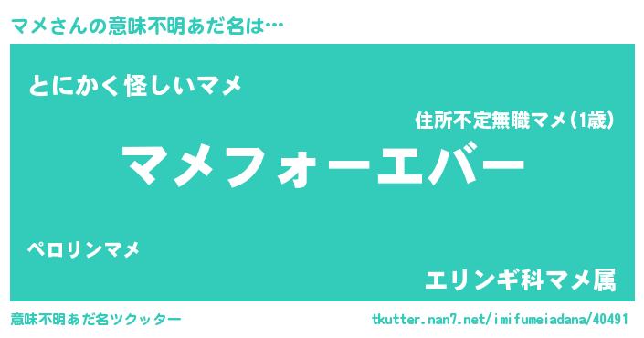 | ポケモン風あだ名 | 『マメダネ』『ヒマメ』『マメキング』 |