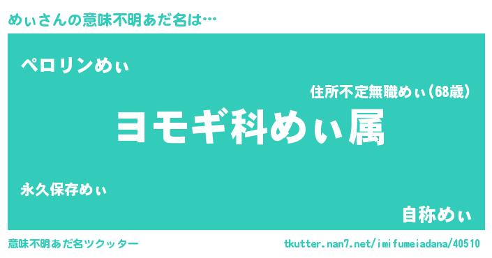 | 胡散臭い通販商品みたいなあだ名 | 『億万長者になれるブレスレット…その名も「めぃ」』 |