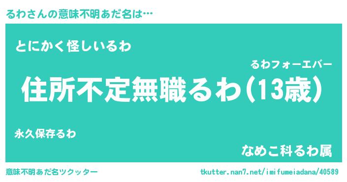 | ヘコむあだ名 | 『るわ太郎』『牛乳』『るわ(苦笑)』 |