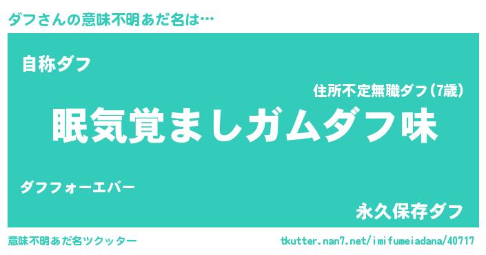 | ヘコむあだ名 | 『ダフ(苦笑)』『豆乳』『ダフもー』 |
