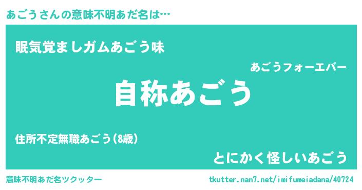 | ヒーロー風カッコイイあだ名 | 『最強戦士アゴウ』『友情の使者あごう』 |