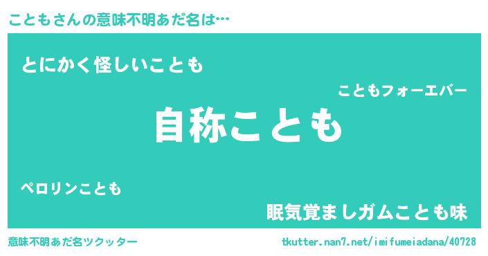 | ヘコむあだ名 | 『ことを』『なまこ酢』『こともー』 |