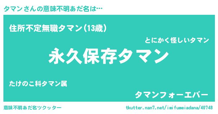 | 男性向けラノベタイトル風あだ名 | 『タマンという概念が存在しない退屈な世界 』 |