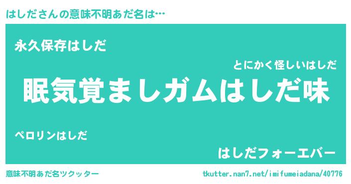| 男性向けラノベタイトル風あだ名 | 『うちのはしだが世界を掌握している!』 |
