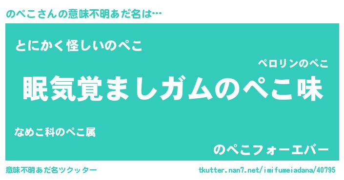 | ヒーロー風カッコイイあだ名 | 『愛の使者のぺこ』『魔戒騎士ノペ』 |