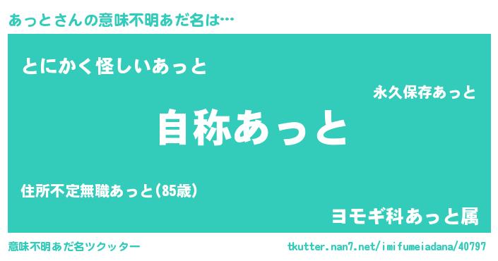 | ヘコむあだ名 | 『あっっちょ』『あっと(小並感)』 |