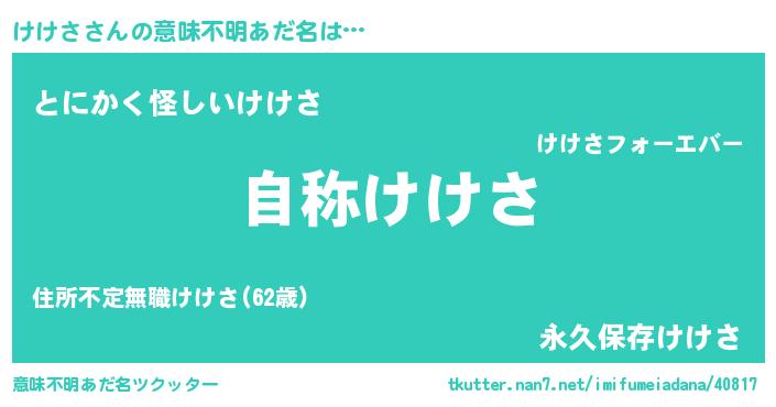 | ヒーロー風カッコイイあだ名 | 『サイバー戦士ケケサ』『幻影騎士ケケ』 |