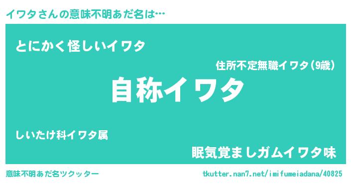 | 男性向けラノベタイトル風あだ名 | 『Re:イワタから始める異世界生活』 |
