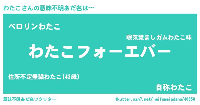 | ポケモン風あだ名 | 『ワタコダネ』『メロワッタ』 |