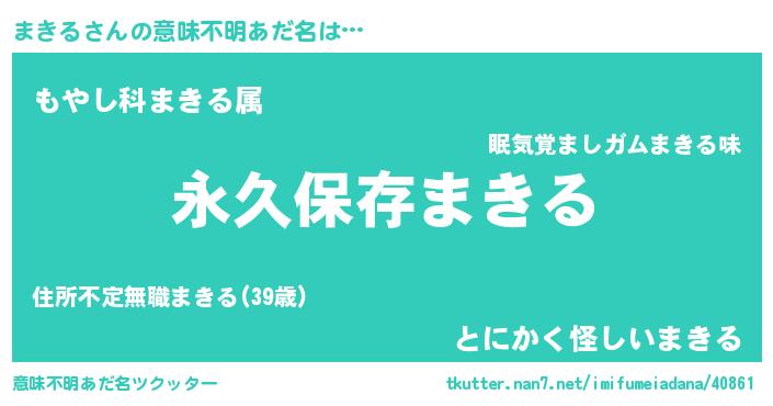 | 男性向けラノベタイトル風あだ名 | 『まきるという概念が存在しない退屈な世界 』 |