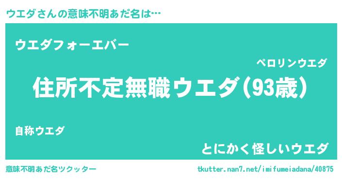 | ポケモン風あだ名 | 『ウーエイ』『ウエゴンZ』『ヒウエダ』 |