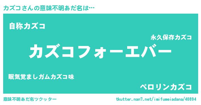 | 女子向けラノベタイトル風あだ名 | 『カズコの雑貨屋さん』 |