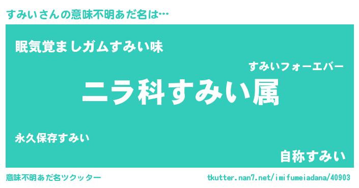 | ヒーロー風カッコイイあだ名 | 『慈愛の使者すみい』『ネオスミイ』 |