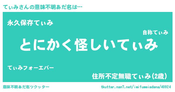 | 自動車の名前っぽいあだ名 | 『テルトィパン』『デミテ』『テクア』 |