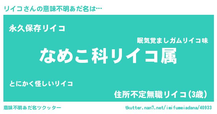 | 胡散臭い通販商品みたいなあだ名 | 『来世でも幸せになれる健康食品…その名も「リイコ」』 |