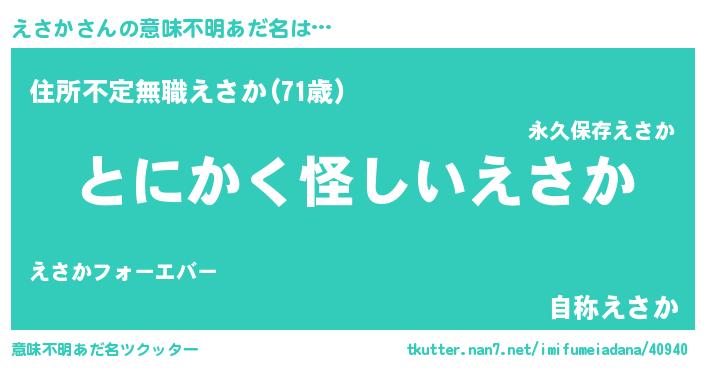 | 欧米人風あだ名 | 『えさか・ステッグマイヤー』 |