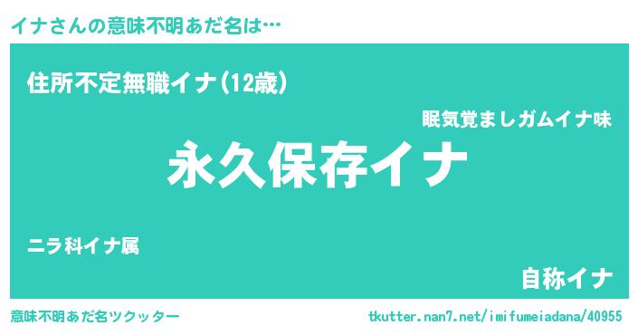 | 男性向けラノベタイトル風あだ名 | 『イナという概念が存在しない退屈な世界 』 |