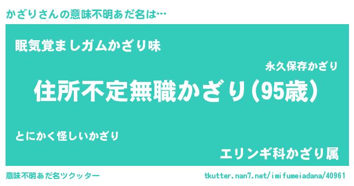 | ヘコむあだ名 | 『かざり(遠い目)』『かざ太郎』 |