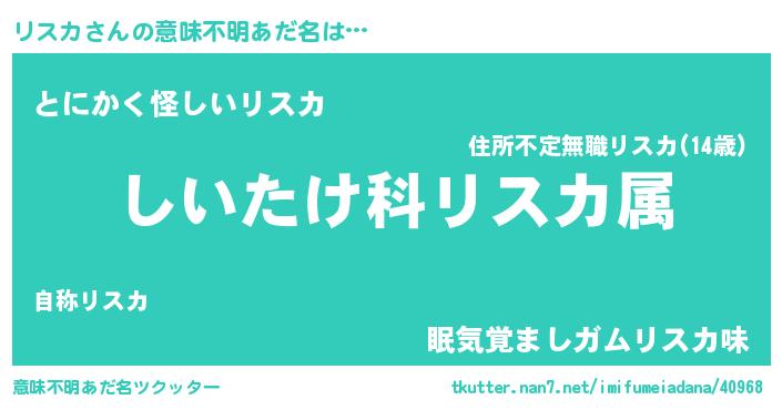| ヘコむあだ名 | 『リスぷりん』『酢こんぶ』 |