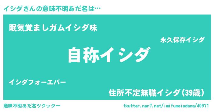 | 欧米人風あだ名 | 『ケンブリッジイシダ』『ダニエルイシダ』 |